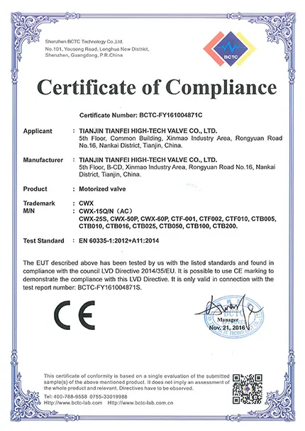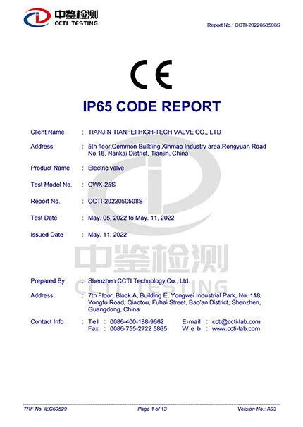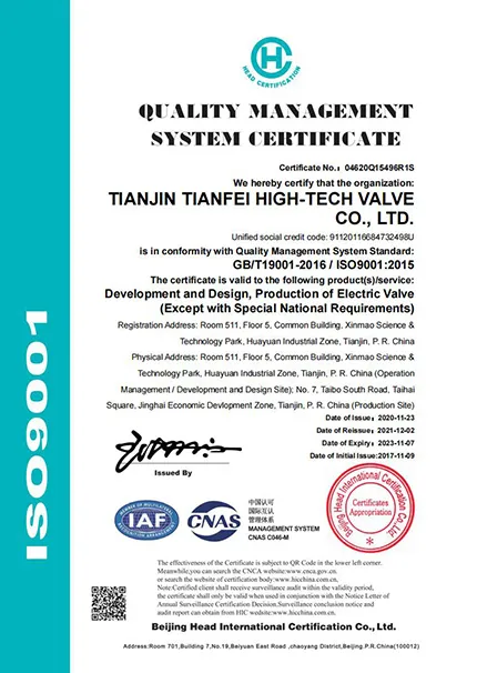 Компания ООО Тяньцзинь Тяньфэй Хайтай Клапан. была официально основана 16 марта 2009 года. Будучи высокотехнологичным предприятием, входящим в состав компании ООО Тяньцзинь Цзиньфэн Наука и Технологии. и специализирующимся на разработке интеллектуальных приборов и клапанов, с момента своего основания компания опирается на обширные ресурсы и мощную техническую поддержку Цзиньфэн Технология. Компания добилась значительных успехов в области исследований и разработок, производства и продаж интеллектуальных клапанов и интеллектуальных измерительных приборов, постепенно превратившись в яркую звезду отрасли.